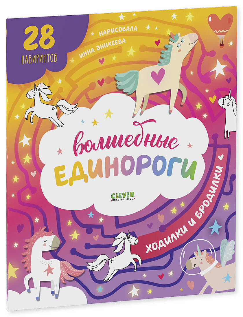 По бродилкам и лабиринтам вы дойдёте до волшебных садов, побываете в замках и покатаетесь с весёлыми единорогами на радуге. Вам понадобятся цветные карандаши или фломастеры, чтобы устроить небольшое соревнование на ловкость и сообразительность! Вперёд!