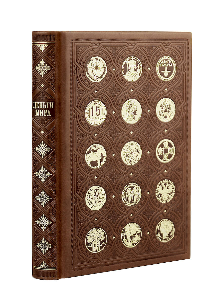 Книга «Деньги мира» в коллекционном переплете может быть приобретена в подарок не только знатокам истории денег и собирателям монет и банкнот, но и для пополнения фамильной библиотеки. Книга, переплетенная в кожу натурального дубления, с окрашенным устойчивым к истиранию красителем и вызолоченным обрезом, прослужит нескольким поколениям читателей. Тираж подтвержден сертификатом.