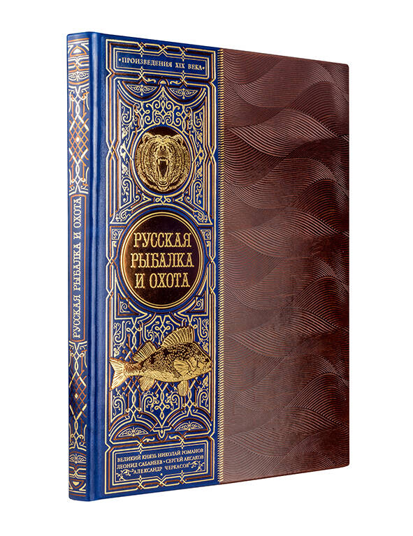 Русская рыбалка и охота. Книга в коллекционном кожаном переплете ручной работы с окрашенным обрезом