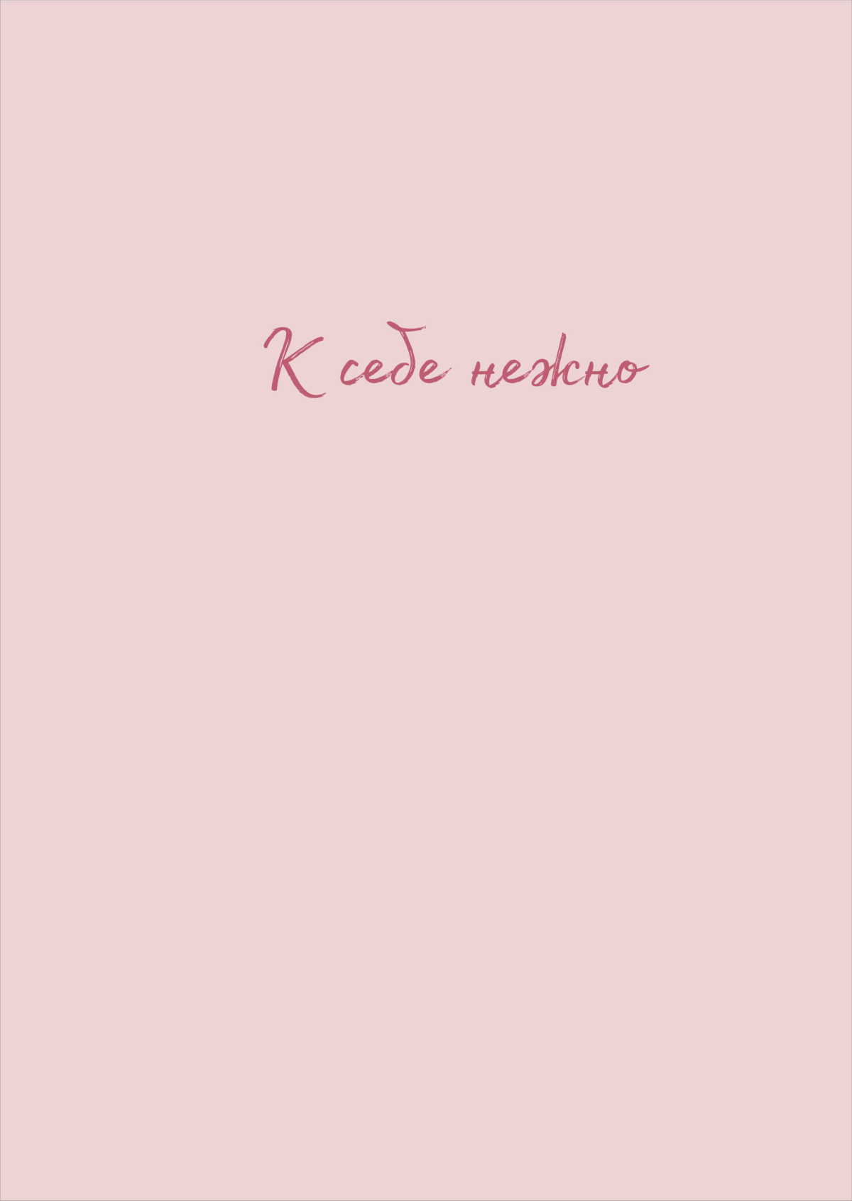 "К себе нежно" – это тетрадь для записей от Ольги Примаченко, психолога и автора книг "К себе нежно" и "С тобой я дома", а также воркбука "В точке покоя".