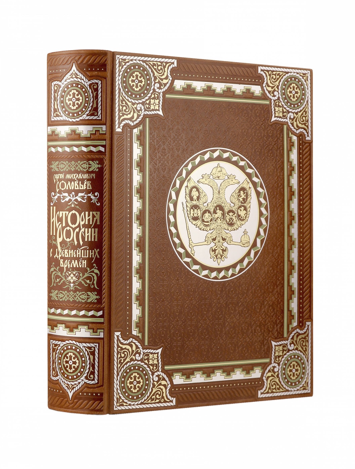 История России с древнейших времен Сергея Соловьева. Книга в коллекционном кожаном переплете ручной работы с многоцветным тиснением и окрашенным обрезом