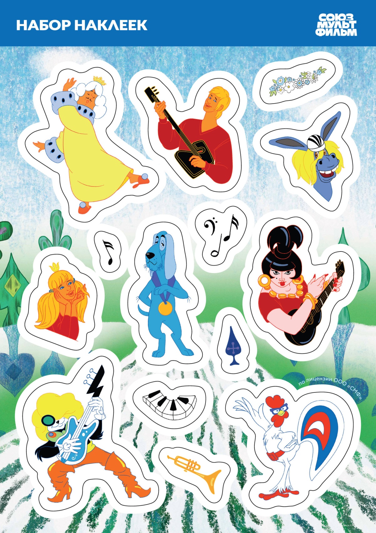 Яркий набор наклеек с любимыми героями из советского мультфильма «Бременские музыканты».