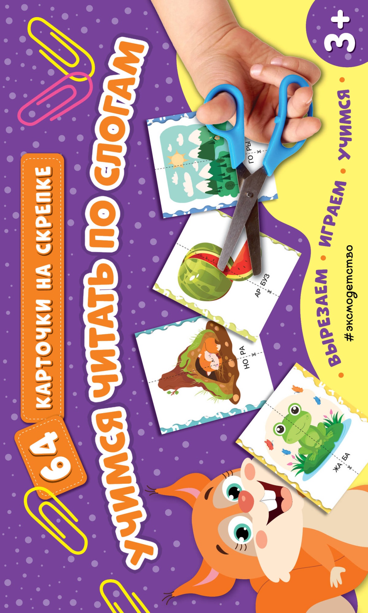 Необычное пособие для дошкольников поможет научиться ребёнку от 3 лет чтению по слогам. При помощи ножниц книга превращается в комплект из 64 двусторонних обучающих карточек, которые нужно попарно соединять в слова. В этом ребёнку помогут яркие привлекательные иллюстрации и цвет обрамляющей рамки, который ограничивает выбор карточек в наборе. Перемешайте карточки и предложите дошкольнику самостоятельно выбрать одну из них. Затем он должен самостоятельно подобрать к ней пару, чтобы из двух половинок сложилась картинка, и прочитать слово. Весь процесс очень похож на увлекательную игру. Пособие можно использовать как для домашнего обучения, так и в детском саду. Книга для детей поможет дошкольнику хорошо выучить слоги и запомнить слова, которые из них получаются, развить внимание, память, логическое и творческое мышление, чтобы стать лучшим учеником при поступлении в школу.