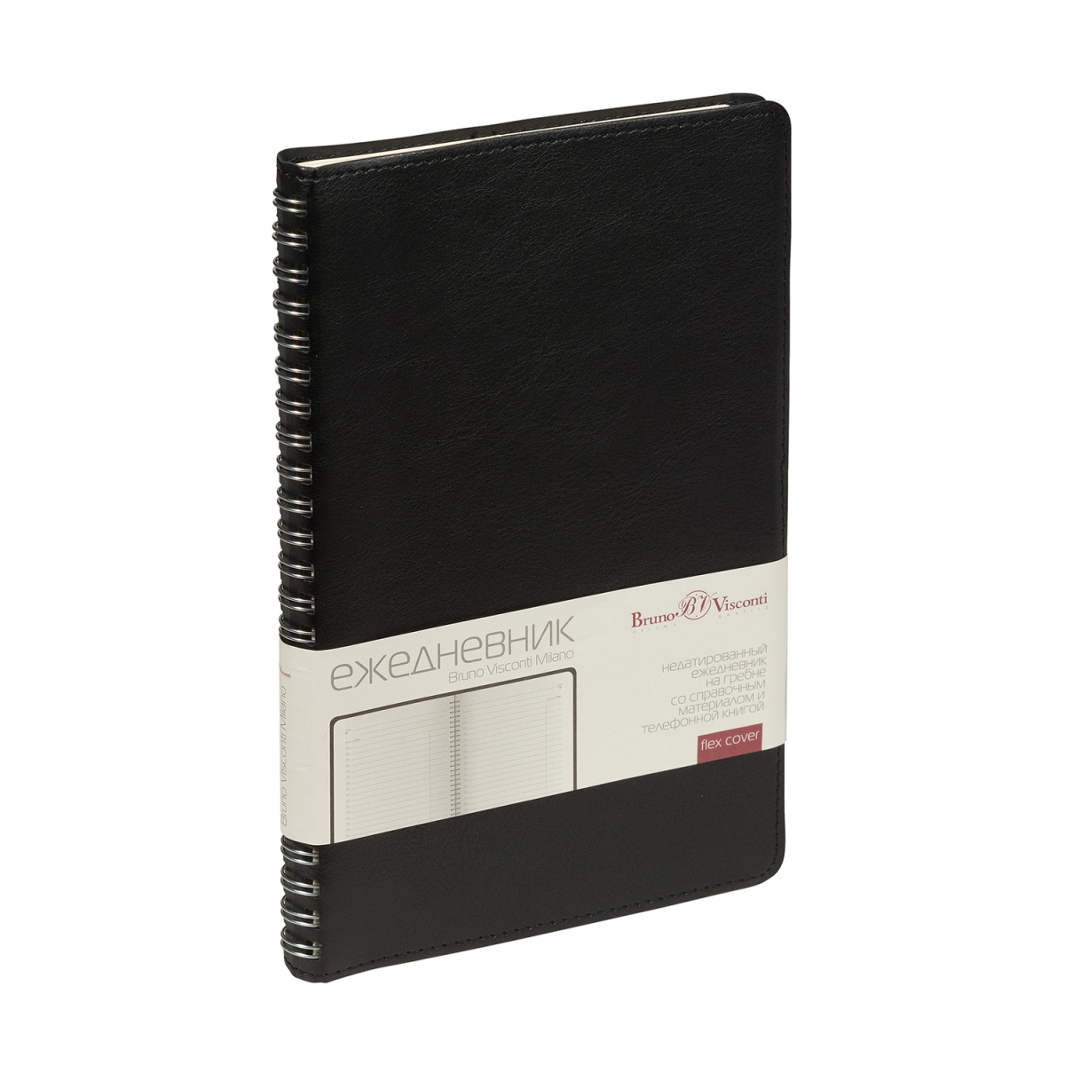 Недатированный ежедневник «MILANO» формата A5 - строгий, классический ежедневник из экокожи, с гибкой (flex) обложкой, отстроченной по периметру в тон. Его легко свернуть в руке и разместить в сумке.