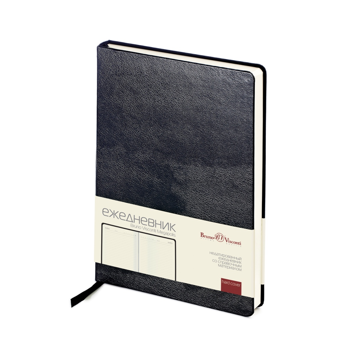 Недатированный ежедневник «Megapolis» от Bruno Visconti в классическом формате А5 для планирования рабочих и личных дел, ведения записей различного характера имеет основной блок линовкой без лишних символов и информации. Дополнительно ежедневник снабжен 8 страницами в клетку с перфорацией, позволяющей легко отсоединить их, не разрушая всю конструкцию блока. Для помесячного планирования отведено 6 страниц в начале ежедневника, за которым следует справочный раздел на 21 странице