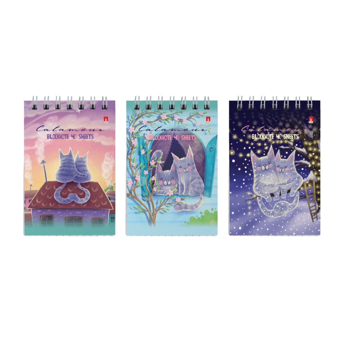 Кто не любит кошек? Ведь чем больше кошечек, тем лучше... Стильный дизайн блокнота не оставит равнодушной ни одну представитеньницу прекласного пола. Линовка блока в клетку поможет вести краткие записи и делать небольшие зарисовки компактно и аккуратно. Вертикально ориентированный блокнот с креплением на металлическом гребне будет великолепным аксессуаром в сумочке или рюкзаке.