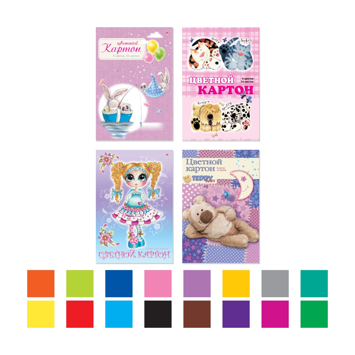 Картон цветной мелов одност А4 16л 8цв Дисней 11-416-171Д Альт
