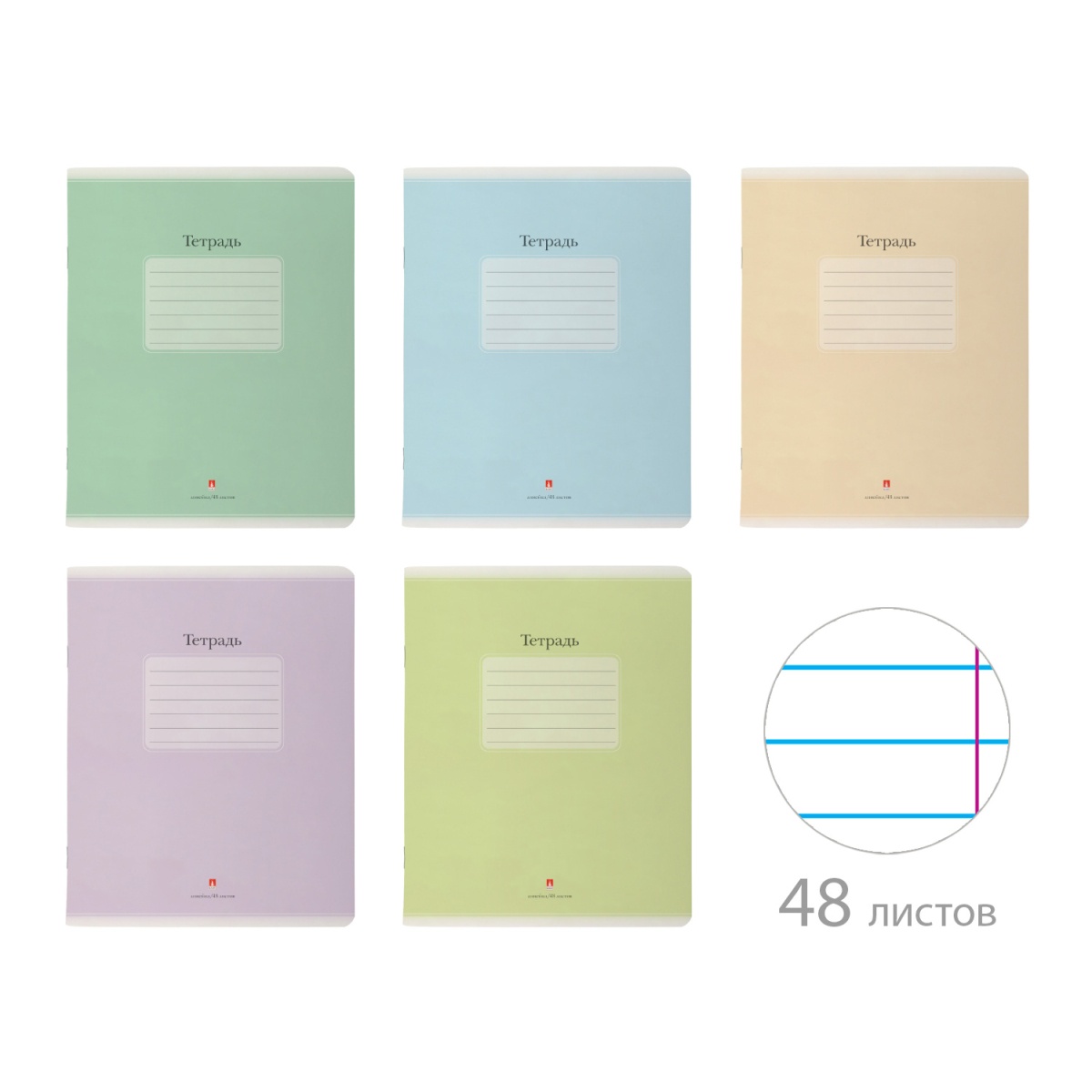 В наборе 5 цветов обложки. 10 тетрадей упакованы в прозрачный полиэтилен.