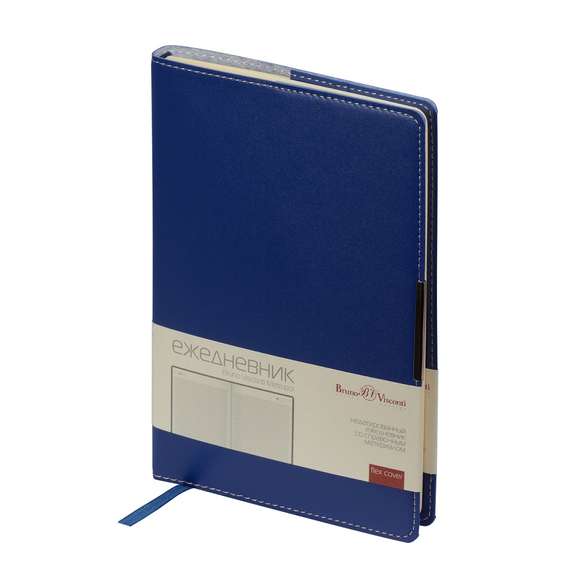 Удобный практичный недатированный ежедневник "METROPOL" от Bruno Visconti в формате А5 в мягкой (Flex) обложке из прочного переплетного материала.