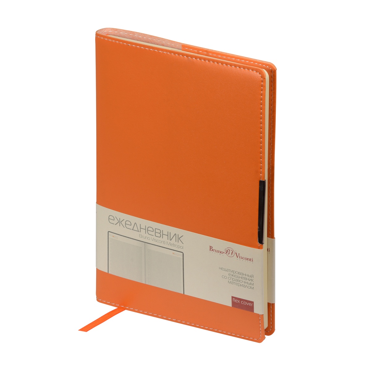 Удобный практичный недатированный ежедневник "METROPOL" от Bruno Visconti в формате А5 в мягкой (Flex) обложке из прочного переплетного материала.