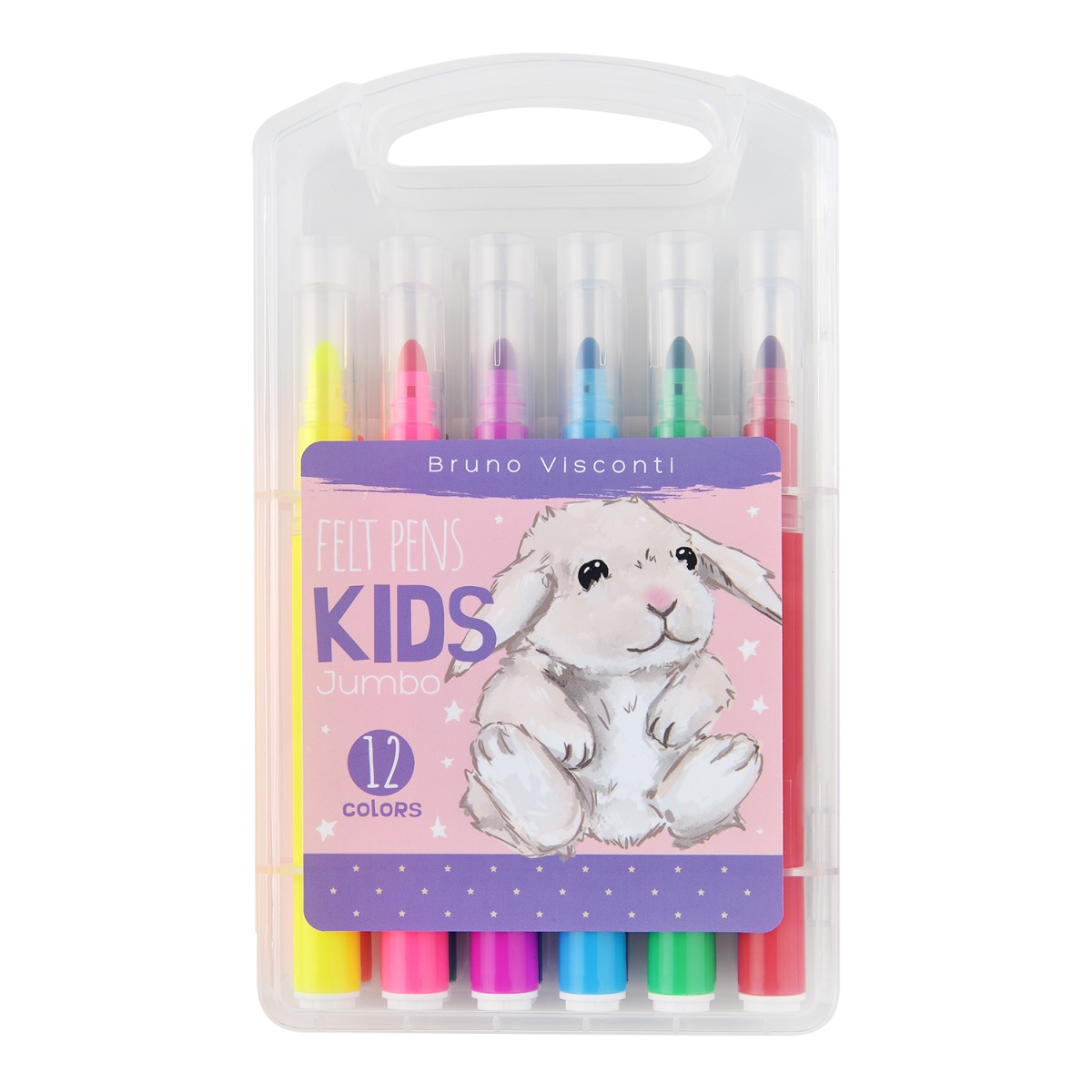 Утолщенные фломастеры "Jumbo Kidsr" ТМ Bruno Visconti идеальны для маленьких детей. Малышу удобно держать их в руке, а сверхтолстый наконечник диаметром 5.5 мм из высококачественного синтетического волокна выдержит любой, даже самый сильный нажим начинающего художника. Яркий корпус из полипропилена в цвет чернил имеет повышенную устойчивость к деформации, при поломке не образует острых краев и не поранит ребенка. Фломастеры снабжены безопасными вентилируемыми колпачками. Чернила на водной основе нетоксичны, не имеют запаха, легко смываются с рук и отстирываются с одежды.