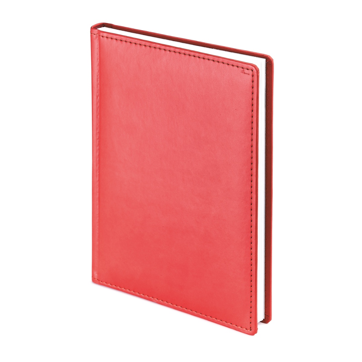 Классический красный ежедневник в твердой обложке выполнен из гладкого кожзаменителя. Приятная на ощупь фактура послужит идеальной основой для тиснения. Поролонированный переплет с прошитым краем выглядит нейтрально и строго. Уголкам придана стильная закругленная форма. Модель формата А4 имеет размер 21х30 см.
