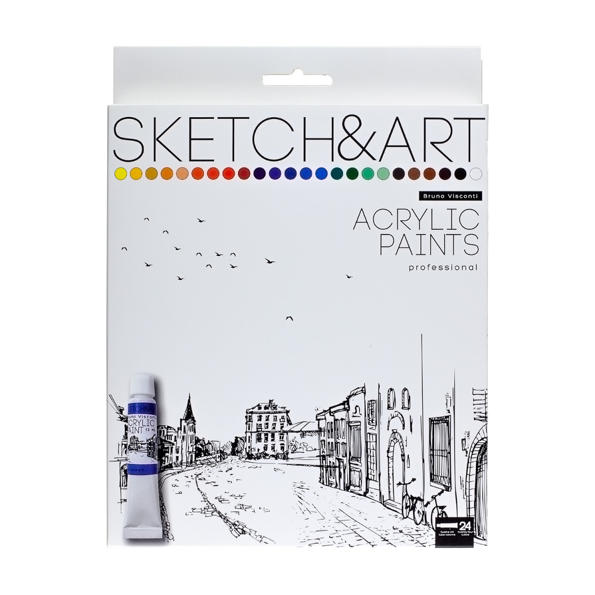 Набор акриловых красок "Sкetch&Art" в тюбиках из комбинированного материала (полиэтилен, алюминий) профессионального качества предназначен для художественных и оформительских работ, прикладного искусства и детского творчества. Краски применяются для работы по бумаге, картону, холсту, керамике, гипсу, бетону и другим материалам. Их можно использовать для имитации акварели, гуаши, масляных красок. Они легко смешиваются друг с другом. Широкая палитра набора из 24 цветов позволяет добиться плавных переходов оттенков цвета и делать профессиональные зарисовки,