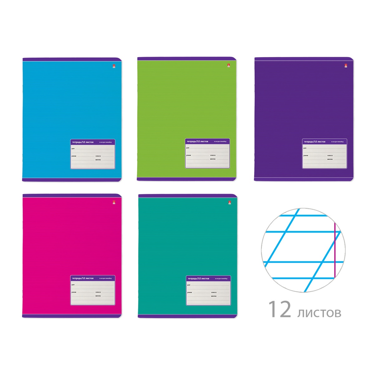 На внешней стороне обложки находится поле для персональных данных школьника. Блок - 12 листов в косую линейку, изготовлен из высококачественной офсетной бумаги плотностью 60 грамм. Блок фиксируется скрепками. Линовка и поля совпадают с лицевой и оборотной сторонами листа. Скругленная форма уголков обложки снижает риск залома. Разметка страниц - косая линейка, поля выделены красным.