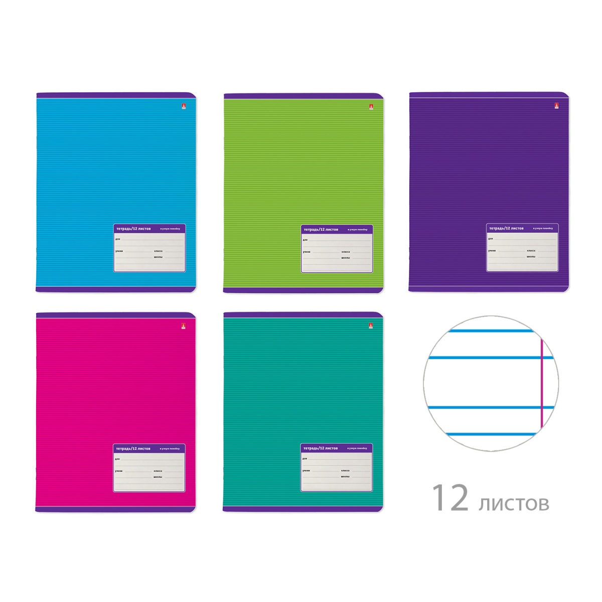 На внешней стороне обложки находится поле для персональных данных школьника. Блок - 12 листов в узкую линейку, изготовлен из высококачественной офсетной бумаги плотностью 60 грамм. Блок фиксируется скрепками. Линовка и поля совпадают с лицевой и оборотной сторонами листа. Скругленная форма уголков обложки снижает риск залома. Разметка страниц - узкая линейка, поля выделены красным.