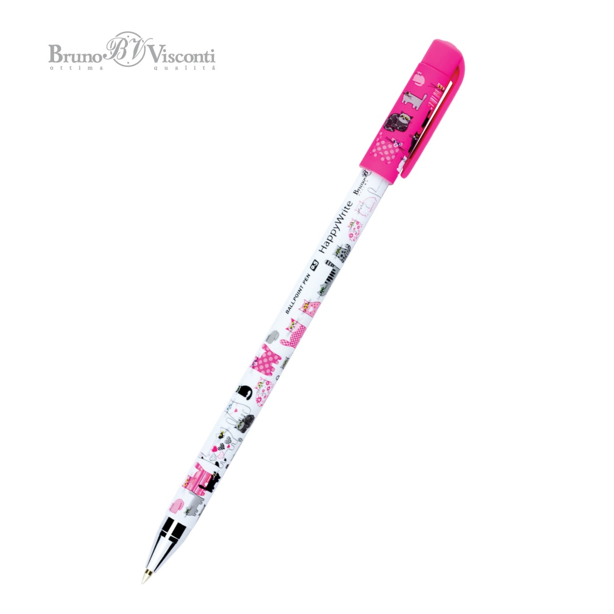 Ручка шар BV HappyWrite Розовые котята 20-0156 0,5мм син