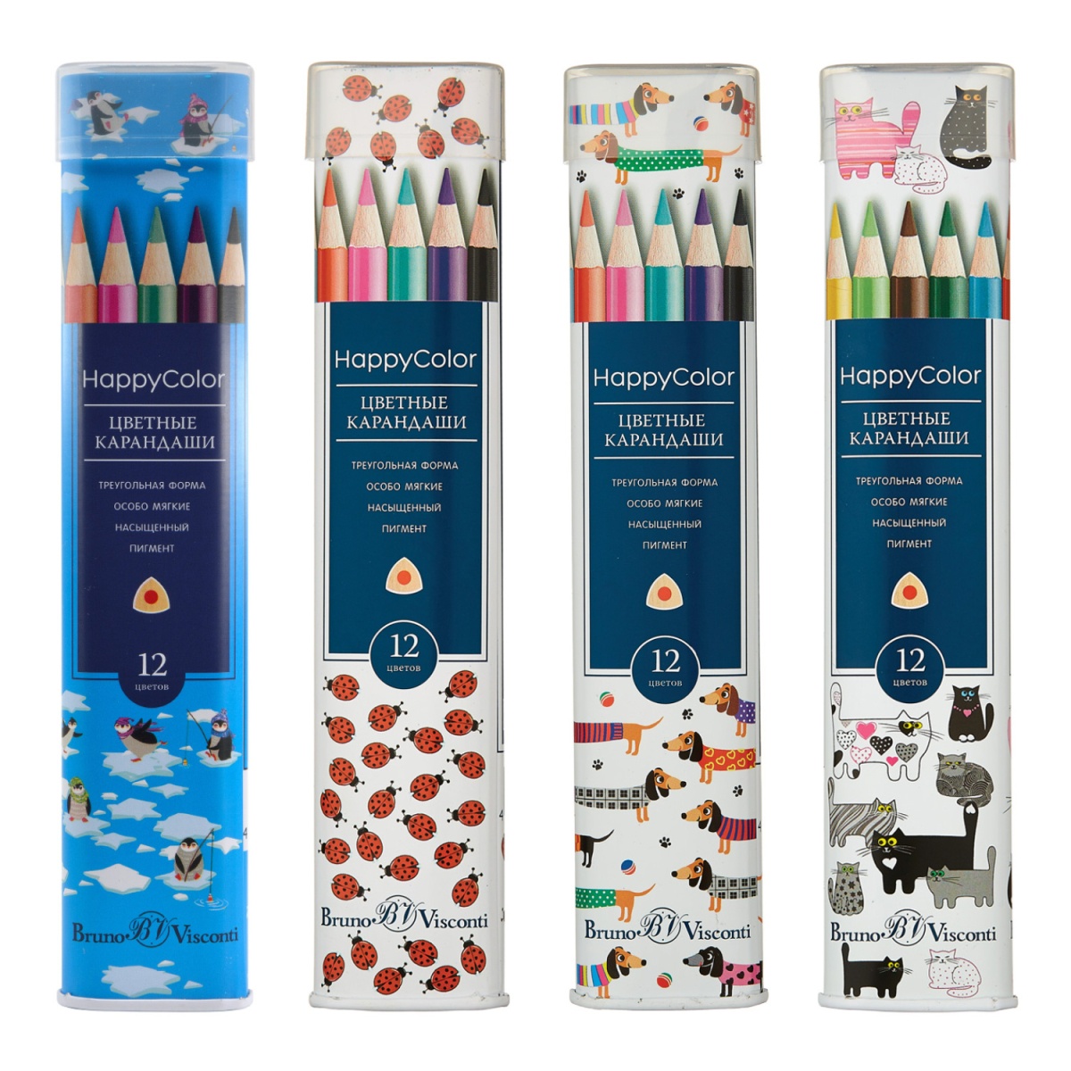 Цветные карандаши «HAPPYCOLOR» ТМ Bruno Visconti - рисовать ими одно удовольствие. Карандаши мягко скользят по поверхности бумаги, не царапая ее, оставляя яркий, насыщенный след. Таким свойством карандаши обладают благодаря высококачественным и безопасным цветным пигментам в составе грифеля.