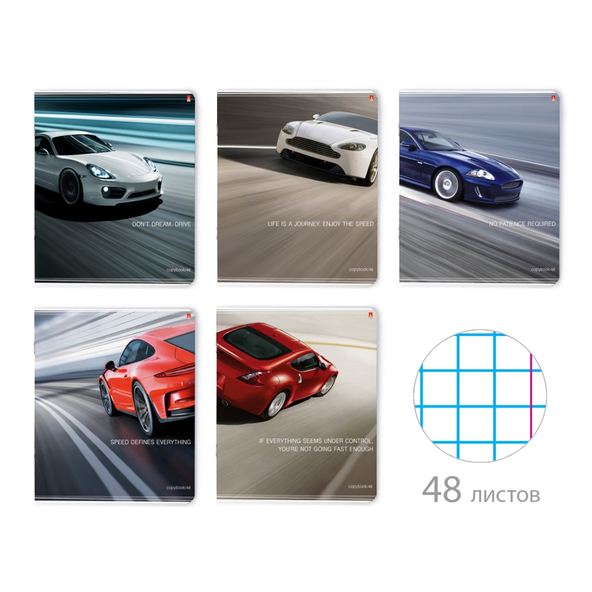 Серия общих тетрадей формата А5 "МАШИНЫ-2" для учебных конспектов и рабочих записей. Оформление серии выполнено в пяти разных вариантах. На обложках изображены машины и цитаты о жизни на скорости: "No patience required", "Speed defines everything", "If everything seems under control, you are not going fast enough", "Life is a journey. Enjoy the speed", "Don't dream. Drive". Обложка плотная, из мелованного картона 190 г/кв.м, углы закруглены. УФ-лаковое покрытие обеспечивает влагозащиту и износостойкость тетради. Бумажный блок состоит из листов плотностью 65 г/кв.м в клетку с красными полями.