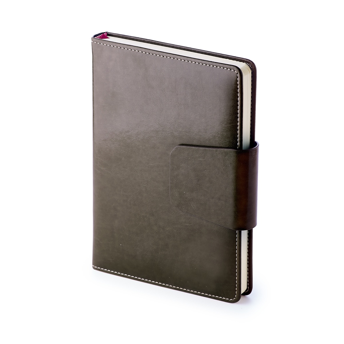 Недатированный ежедневник Bruno Visconti «PRESTIGE» формата А5 идеально дополняет имидж современного делового человека. У ежедневника твердая обложка из гладкой экокожи, неотличимой от кожи fiore vegetale. Благодаря скругленному корешку и уголкам обложки, магнитному клапану и закладке-ляссе, ежедневник выглядит невероятно стильно и респектабельно. Элегантность исполнения достигается за счет деталей - цвет шва по периметру гармонирует с цветом обложки.