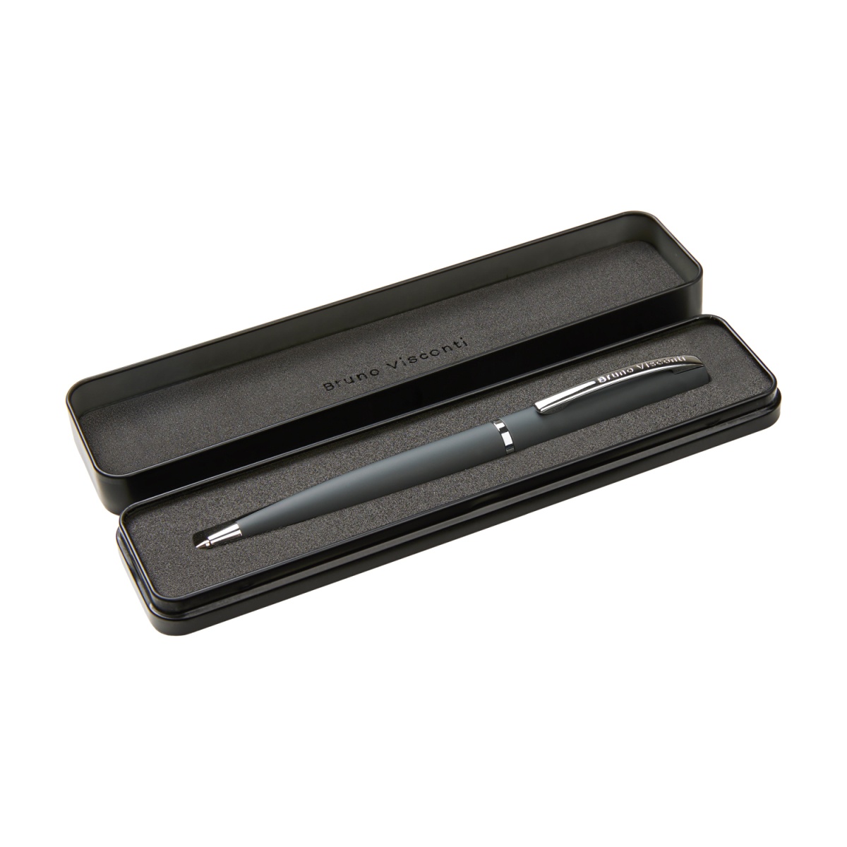 Стильная и строгая автоматическая шариковая ручка «Sienna». Металлический корпус выполнен в сером цвете с элементами из серебристого металла. Нанесение специального покрытия Soft Touch дарит приятные тактильные ощущения при работе с ней. Качественные чернила Dokumental (Германия) и пишущий узел Premec (Швейцария) обеспечивают мягкое и приятное письмо.