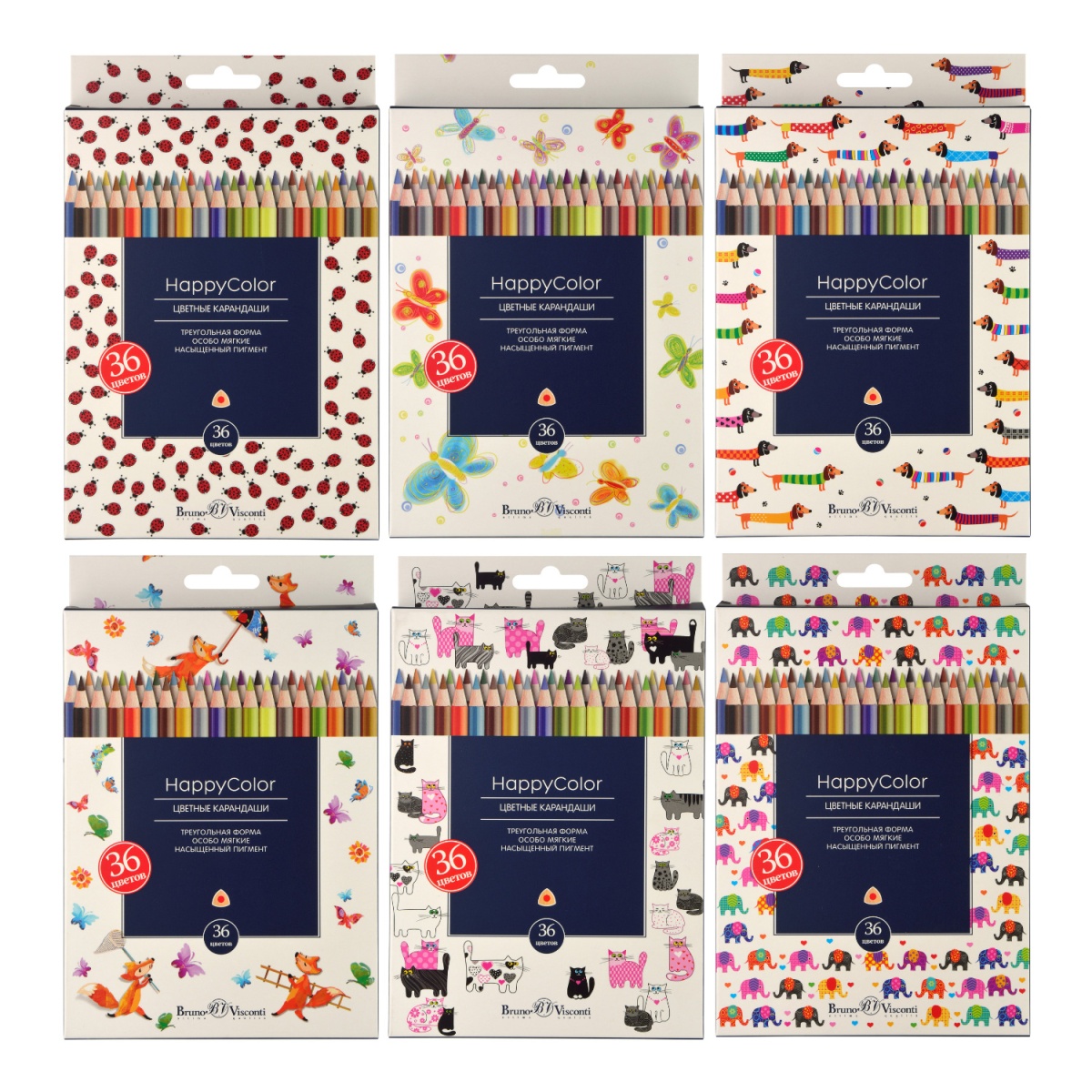 «Счастлив малыш - счастливы родители!» - так можно сказать про цветные карандаши «HAPPYCOLOR» ТМ Bruno Visconti. Рисовать ими легко и в удовольствие. Карандаши мягко скользят по поверхности бумаги, не царапая ее, оставляя яркий и насыщенный след. Таким свойством карандаши обладают благодаря высококачественным и безопасным цветным пигментам в составе грифеля.