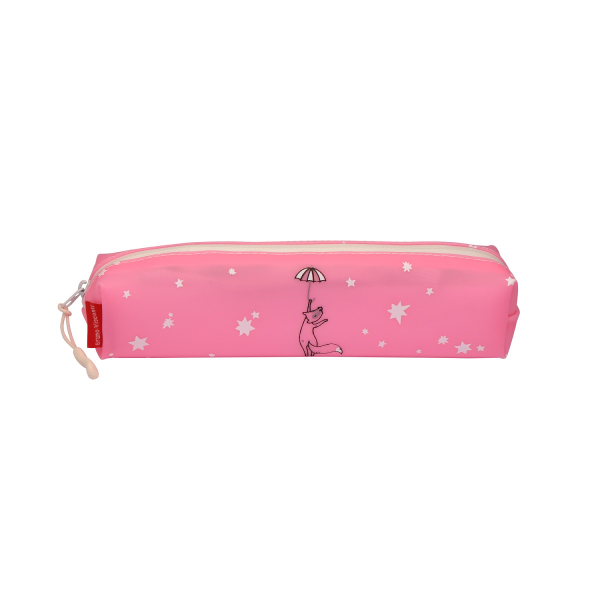 Милый пенал-тубус из коллекции "Веселый лис". Это пенал из мягкого силикона. Подходит для использования в школе и для внеклассных занятий. Компактный пенал: внутри одно просторное отделение. Сюда легко поместить ручки, карандаши, ластик и точилку, кисти и линейки длиной до 20 см. Пенал закрывается на влагозащищенную молнию со специальным хлястиком, который поможет открыть и застегнуть пенал легко и быстро. Его можно мыть, что позволит надолго сохранить аккуратный и опрятный вид. Дизайн выполнен в розовом цвете с рисунком лиса, который летит на зонтике среди звезд.