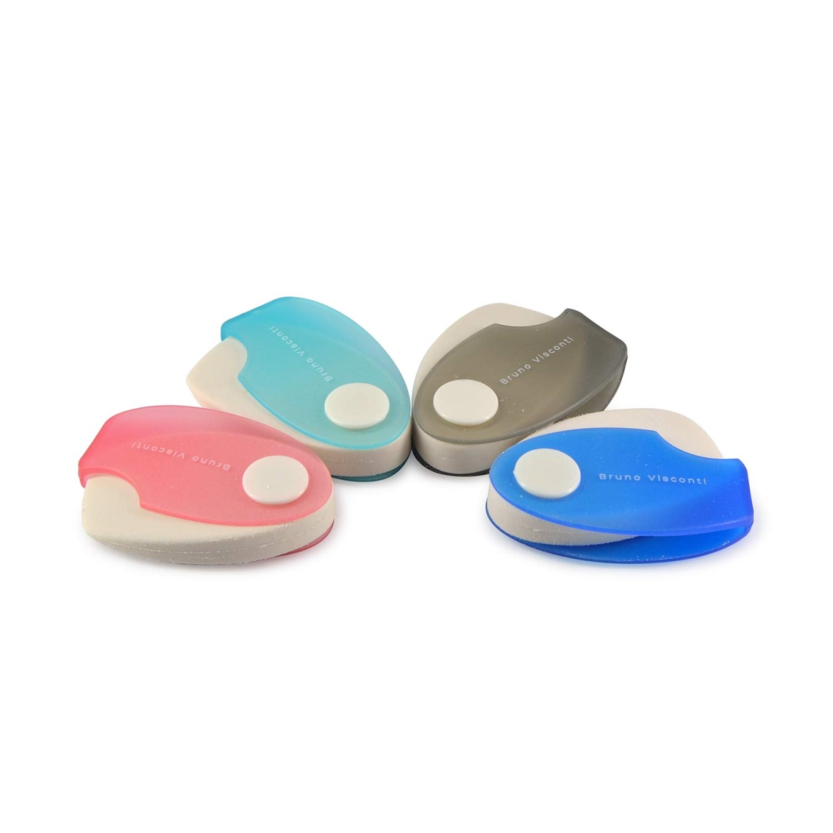 Ластик из коллекции "HappyGraphix" с защитным футляром, который открывается поворотным механизмом. Мягко и аккуратно стирает карандаш. Подойдет для использования и в школе, и в офисе. Ластик овальной формы удобно держать в руке. Это позволяет точнее стирать лишние объекты или линии. Хороший ластик всегда и везде должен быть под рукой, если вы работаете с карандашом. И неважно, исправляете ли вы документы, делаете ли набросок. Важен чистый результат. В серии четыре варианта цвета: серый, розовый, синий, бирюзовый. В стандартной упаковке 24 ластика в картонном дисплее.