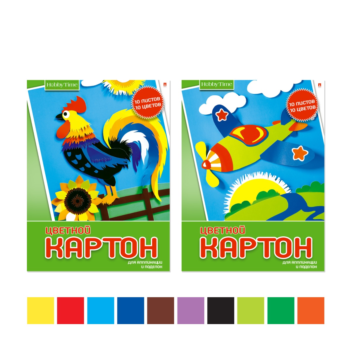 Картон цветной А3 офсет одност 10л 10цв Хобби Тайм 11-510-294 Альт (Ф?)