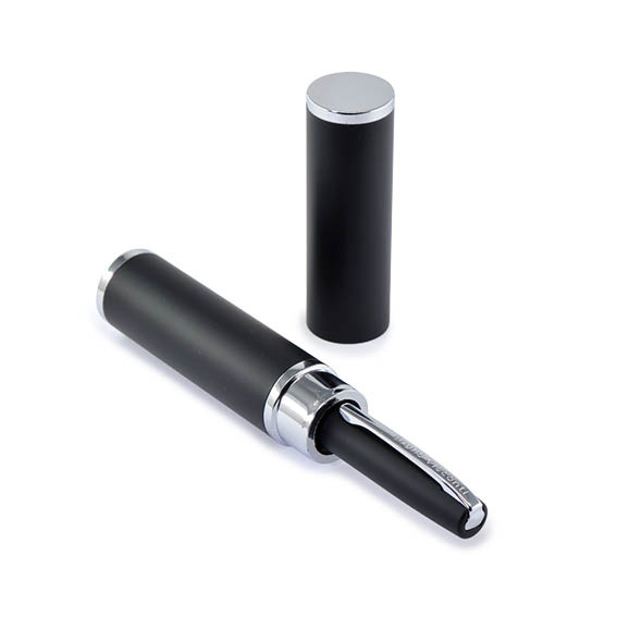 Стильная и строгая автоматическая шариковая ручка «Sienna». Металлический корпус выполнен в черном цвете с элементами из серебристого металла. Нанесение специального покрытия Soft Touch дарит приятные тактильные ощущения при работе с ней. Качественные чернила Dokumental (Германия) и пишущий узел Premec (Швейцария) обеспечивают мягкое и приятное письмо.