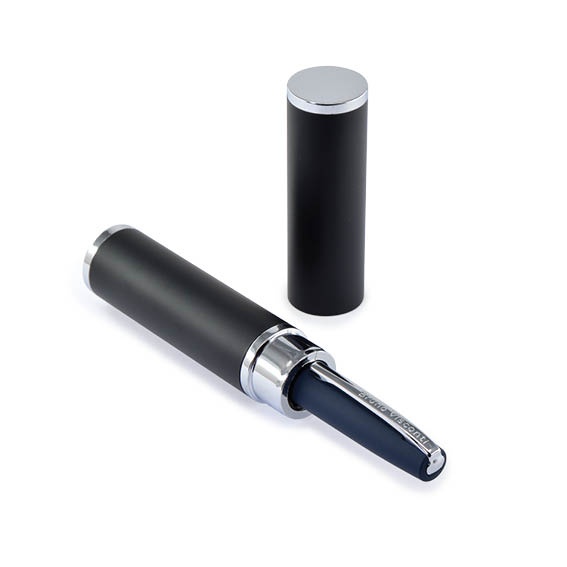 Стильная и строгая автоматическая шариковая ручка «Sienna». Металлический корпус выполнен в синем цвете с элементами из серебристого металла. Нанесение специального покрытия Soft Touch дарит приятные тактильные ощущения при работе с ней. Качественные чернила Dokumental (Германия) и пишущий узел Premec (Швейцария) обеспечивают мягкое и приятное письмо.
