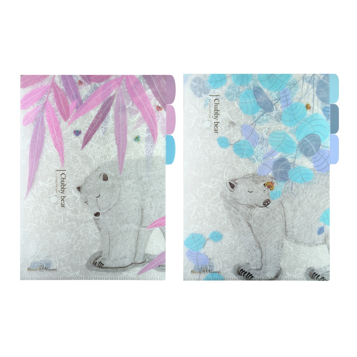 Папка-уголок из серии "Белая медведица". Это полупрозрачная папка с тремя отделениями стандартного формата А4. Изготовлена из плотного полимерного материала, толщиной 0,18 мм. Выполнена в двух цветовых гаммах: голубой и лиловой. Оформлена очень нежной иллюстрацией "Chubby bear" с изображением белых медведей. Печать качественная, яркая, не стирается при интенсивном использовании. Подойдет для школы, дома и офиса. Папка не царапается, долго сохраняет опрятный вид. Аккуратно и стильно смотрится на рабочем столе. В стандартной упаковке 12 шт. разных цветов.