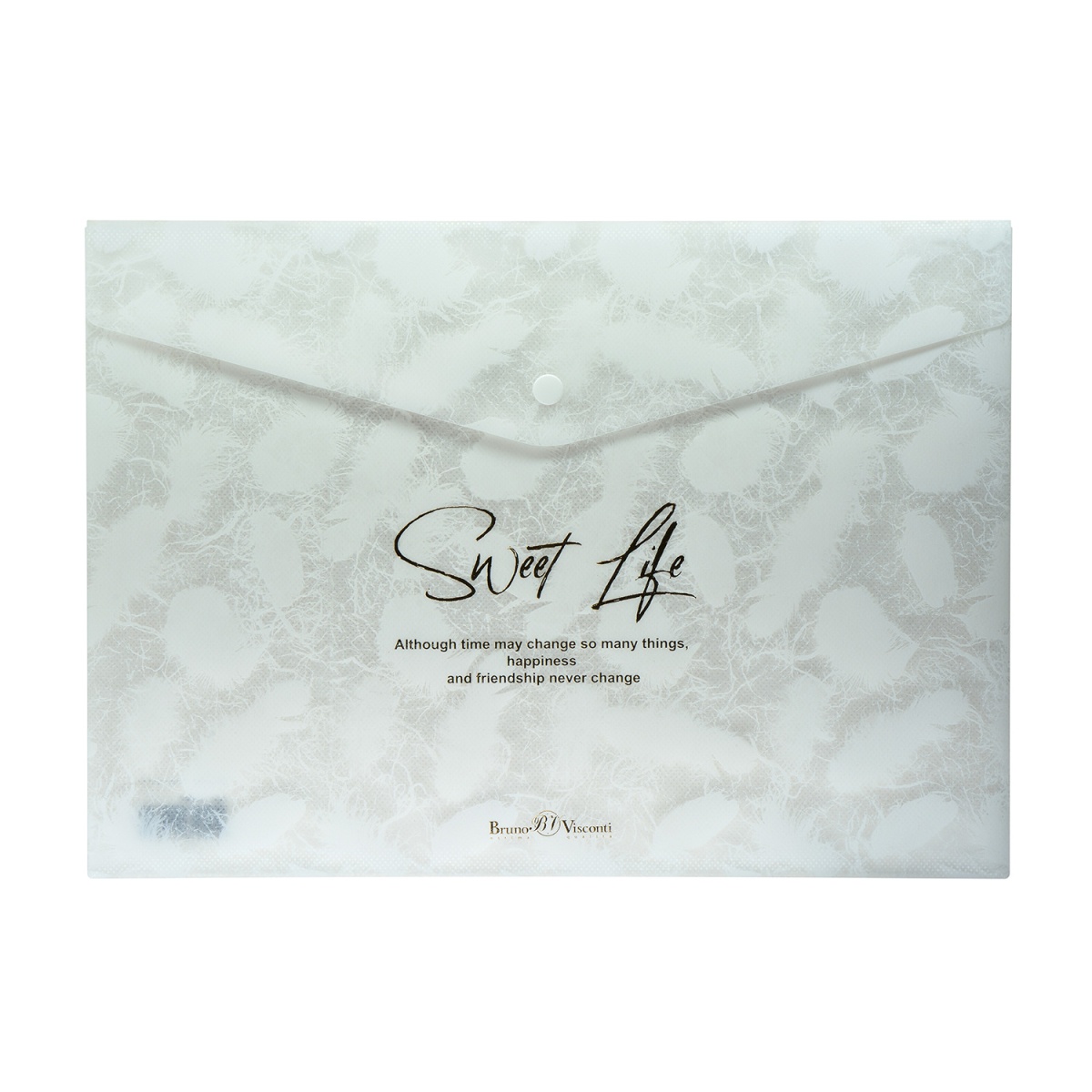 Папка-конверт на кнопке А4 рис фактура Альт 14-041 Листочки и перышки