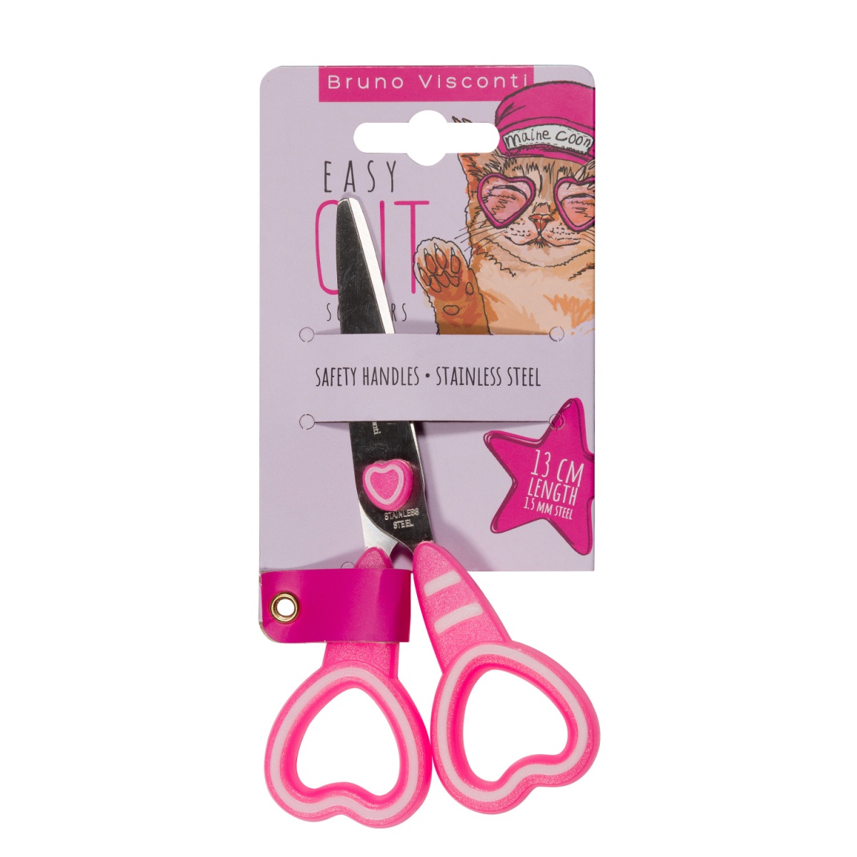 Приятно когда качество и функциональность сочетаются с ярким дизайном, особенно в продукции, рассчитанной на детей. Ножницы из прочной нержавеющей стали длиной 13 см режут четко и аккуратно. Ручки в форме сердечек рассчитаны на удобство детских пальчиков. Они сделаны из прочного пластика с мягкими резиновыми элементами, которые позволяют надежно удерживать ножницы в руке в процессе работы. Предназначены для детского творчества, хорошо режут тонкий картон, бумагу, ленты, скотч. Толщина лезвий 1,44 мм. Кончики лезвий безопасные, закругленные.
