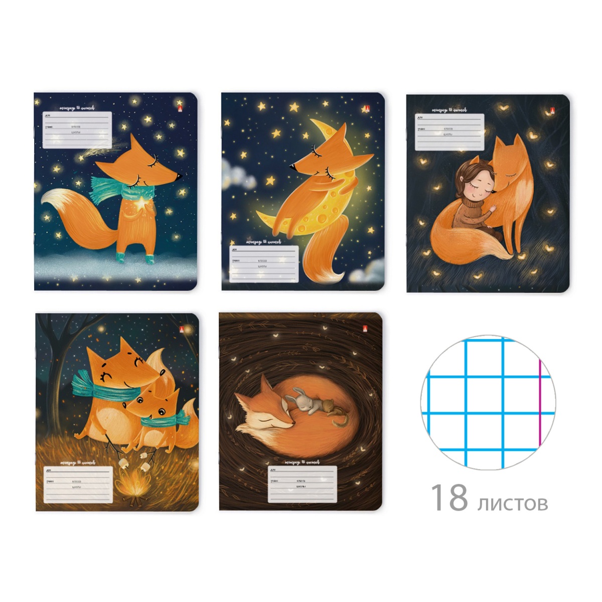 Школьная тетрадь в клетку из коллекции "Волшебные лисы". Объем - 18 листов. Формат А5. Есть пять вариантов оформления обложек. На каждой - спящий лисенок или семья лисов и звездная ночь. Обложка тетради изготовлена из мелованного картона 190 г/кв.м с золотым фольгированием. Бумажный блок состоит из белых листов в клетку с красными полями. В стандартной упаковке 120 шт. Есть возможность составить комплект с другими товарами из этой серии.