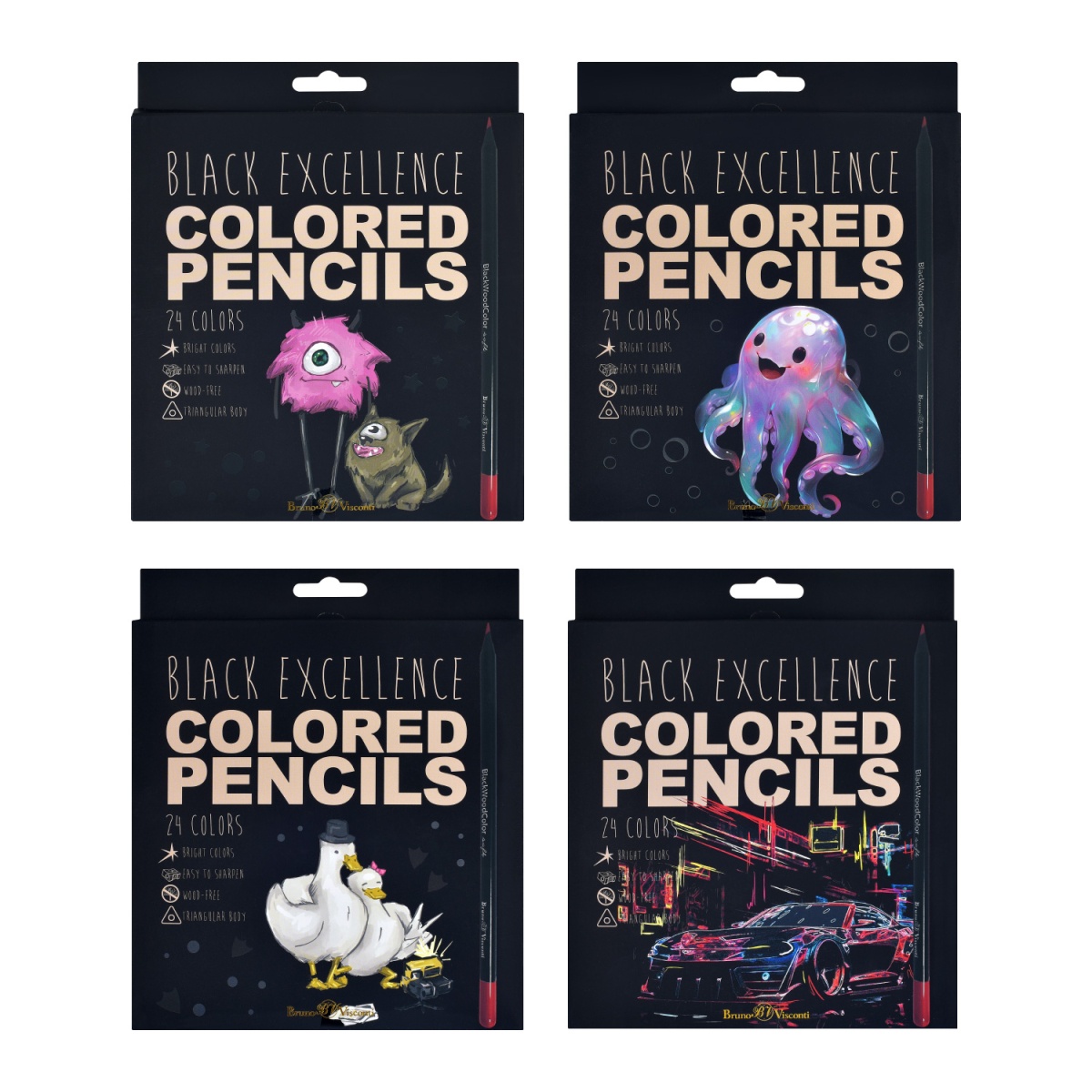 Набор из 24 цветных пластиковых карандашей «BlackWoodColor» в стильном черном корпусе. Обновленный дизайн продукта и упаковки при неизменно высоком качестве ТМ Bruno Visconti.