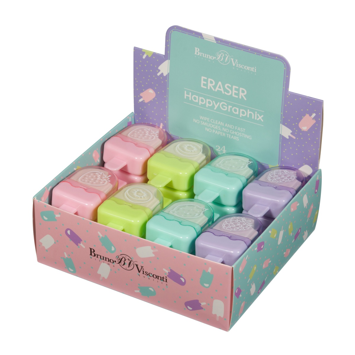 Ластик BV 42-0024 Happy Graphix Мороженки держатель футляр