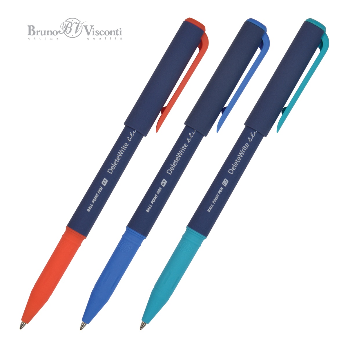 Ручки «DeleteWrite» – надежный помощник в деле исправления ошибок или удаления помарок. Чернила легко становятся прозрачными при трении небольшой плотной резинки на конце корпуса ручки. При этом сама резинка не стирается так быстро, как обычный ластик, и годится для многократного использования.