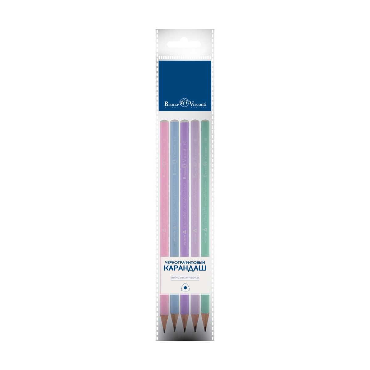 Набор из пяти чернографитовых деревянных карандаша "Graphix Zefir" от Bruno Visconti. Эргономичный трехгранный корпус позволяет удобно держать карандаш в руке, не напрягая кисть. Проклееный грифель не сломается при ударе или падении карандаша. Карандаш HB, диаметром 2 мм. универсален. Подходит для учебы, рабочих задач, рисования.