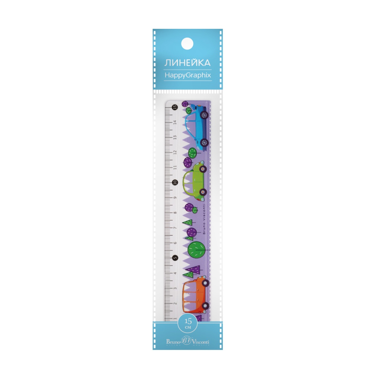 Линейка пластик рис 15см BV 45-0012/03 Happygraphix волнист кр Загородная поездка
