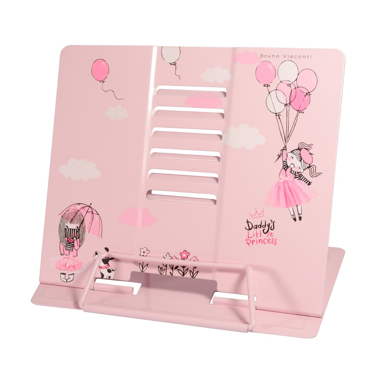 Подставка для книг "Daddy's little princess" - для папиных принцесс. Удобная подставка из металла с регулируемым наклоном на шесть уровней высоты. Выполнена в нежном розовом дизайне. Есть прижимной механизм, который удерживает страницы. Тонкая, легкая и прочная: не займет много места в школьном рюкзаке, не сломается, не прибавит много веса в портфеле, что особенно важно для младших школьников. Подставка не скользит и не царапает стол благодаря резиновым стопорам, расположенным в ее основании. В стандартной упаковке 12 шт.