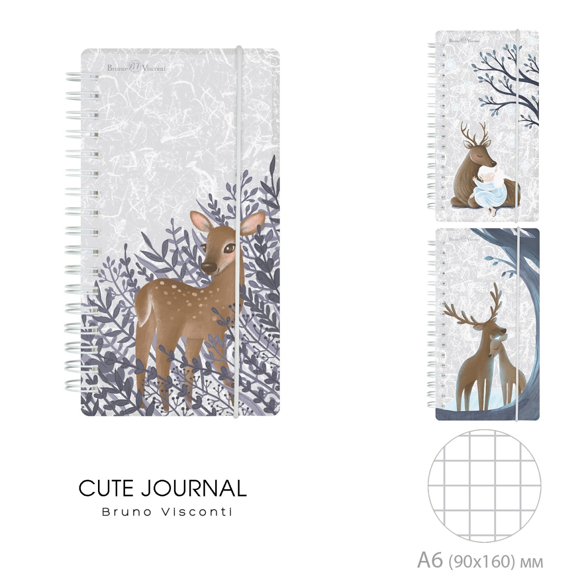 Блокнот BrunoVisconti серии "CUTE JOURNAL". Обложка блокнота пластиковая и гибкая. Дизайны обложки: нежные и сказочные олени в лесу. Крепление блока на спирали позволяет открыть его на 360 градусов.Формат блокнота А6, 80 листов. Цвет листов благородный бежевый. Листы плотные 80г/кв.м. У блокнота есть полезные особенности: фиксирующая резинка, угол блока скругленный, перфорация на каждом листике вдоль спирали (позволит аккуратно оторвать листик).