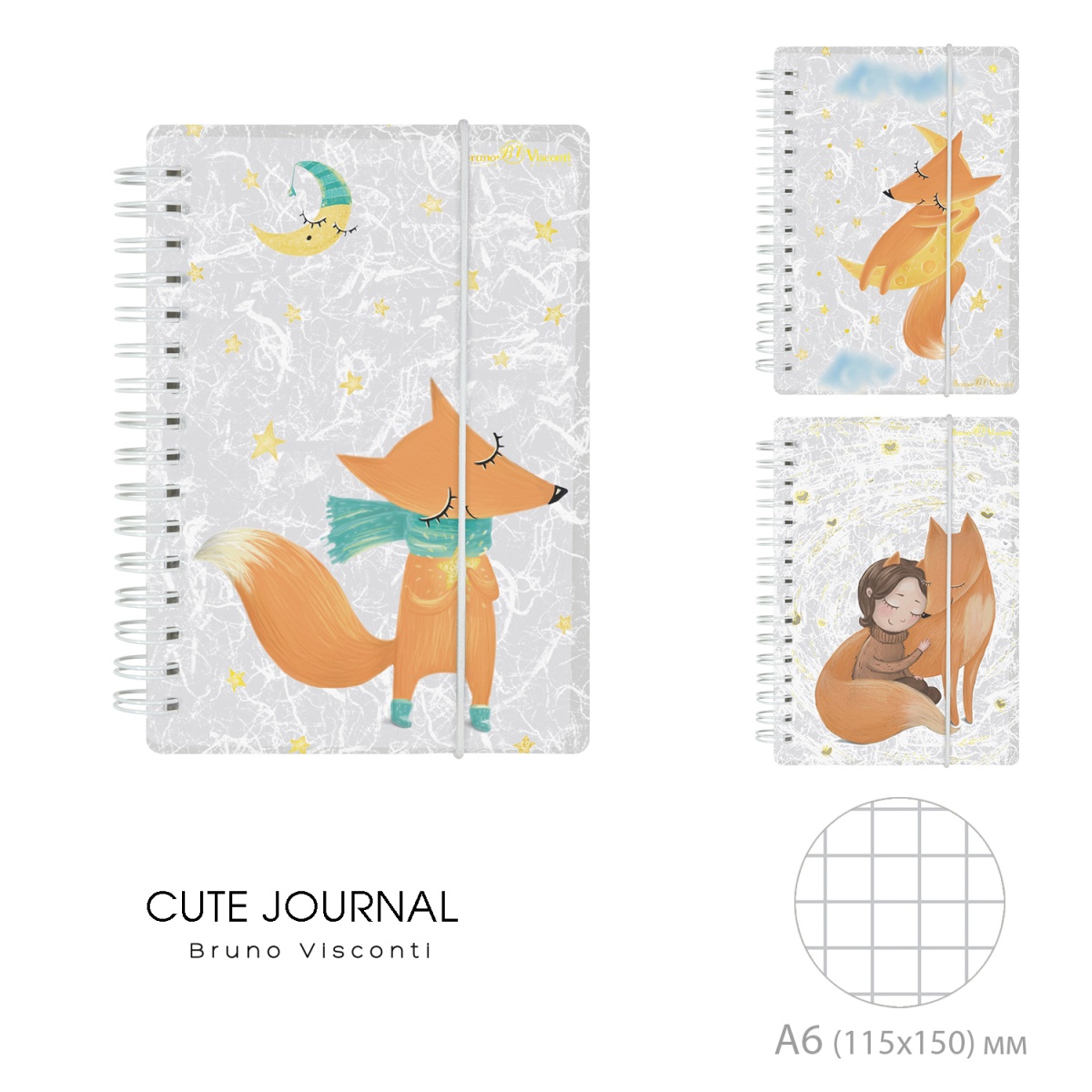 Блокнот BrunoVisconti серии "CUTE JOURNAL". Обложка блокнота пластиковая и гибкая. Дизайны обложки: сказочные и волшебные лисы. Крепление блока на спирали позволяет открыть его на 360 градусов.Формат блокнота А6 (110х150мм). 80 листов. Цвет листов благородный бежевый. Листы плотные 80 г/кв.м. У блокнота есть полезные особенности: фиксирующая резинка, угол блока скругленный, перфорация на каждом листике вдоль спирали (позволит аккуратно оторвать листик).