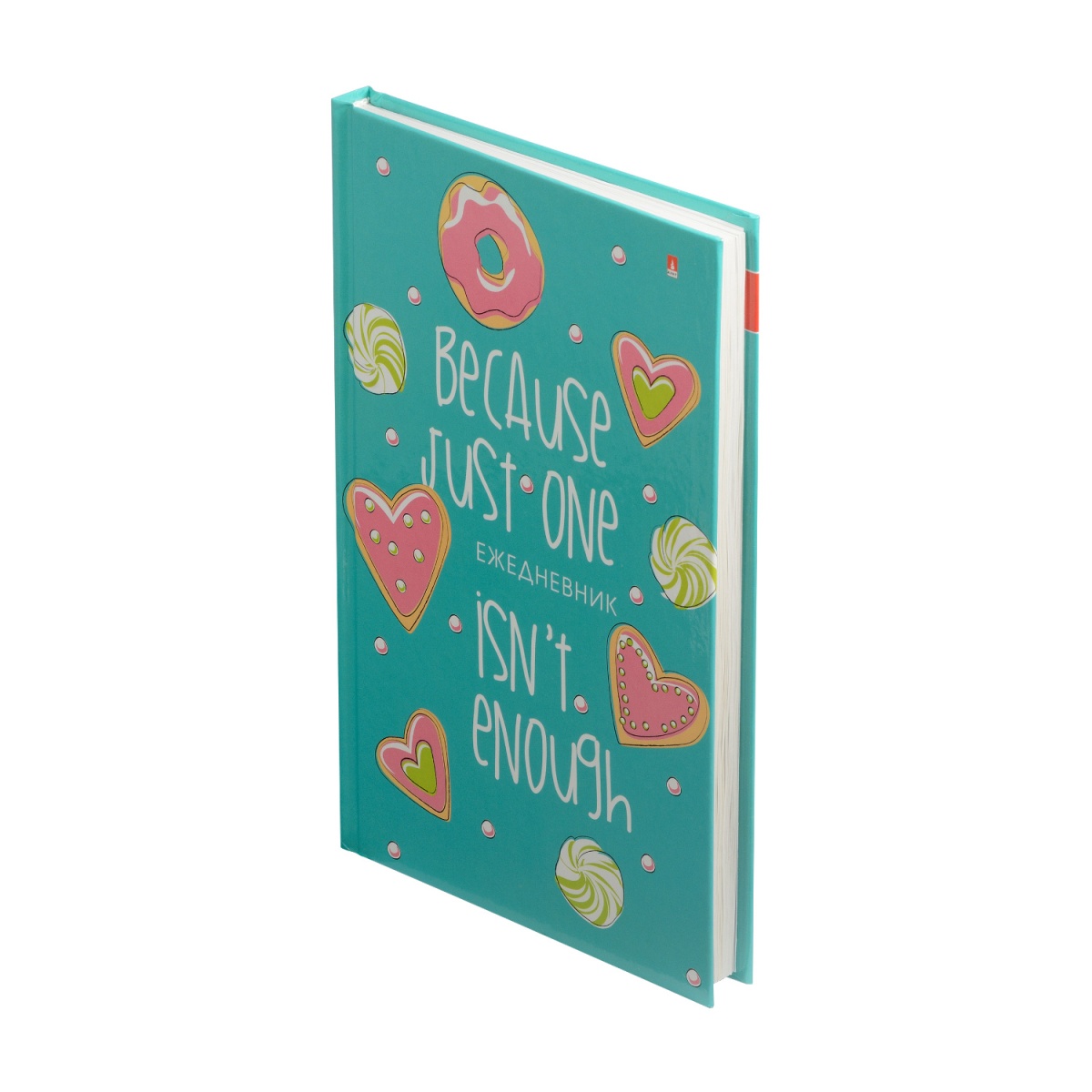 Ежедневник из коллекции Альт со вкусным дизайном из пряников и пончиков для сластен, для школьниц и студентов. Может стать тематическим подарком на различных мероприятиях, вечеринках. Недорогой, качественный, функциональный, радостный планер. Выполнен в формате А5 в твердой ламинированной глянцевой обложке, украшенной дизайнерским принтом с надписью "Because just one isn't enough". Ежедневник недатированный. Бумажный блок закреплен надежно книжным переплетом. Внутри страницы разлинованы на графы. Временной интервал - полчаса. Дополнительно есть блок со справочной информацией на 15 стр. и телефонная книга на 20 стр. В комплект к ежедневнику можно приобрести и другие товары из этой коллекции: тетради, карандаши, ластики.