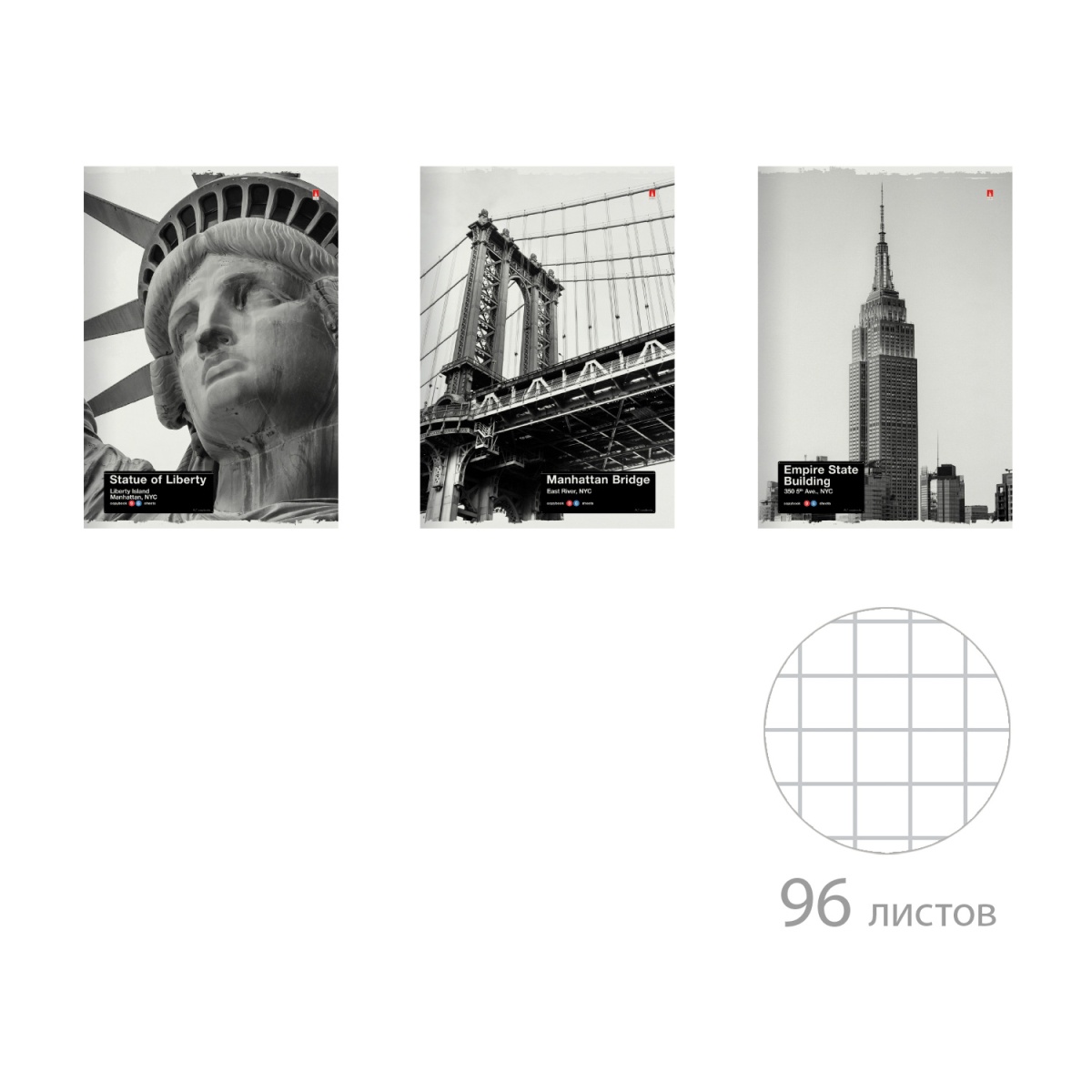 Стильные фотографии трех главных символов Нью-Йорка легли в основу дизайна серии тетрадей "NY-NY": Статуя Свободы, Бруклинский мост и Empire State Building. 96-листные тетради формата А4 способны вместить большой объем информации, они прекрасно подойдут для записи лекций в колледжах и ВУЗах, заметок по научной работе, ведения учетных таблиц и т.д. Для производства тетрадей использовались высококачественные полиграфические материалы: целлюлозный картон плотностью 190 г/кв.м и офсетная бумага плотностью 60 г/кв.м. Картонная обложка надежно предохраняет тетрадь от механических повреждений, а плотная бумага позволяет использовать чернила различного состава. Стандартная линовка в клетку помогает вести записи четко и аккуратно. Тетрадь сшита двумя металлическими скрепками.