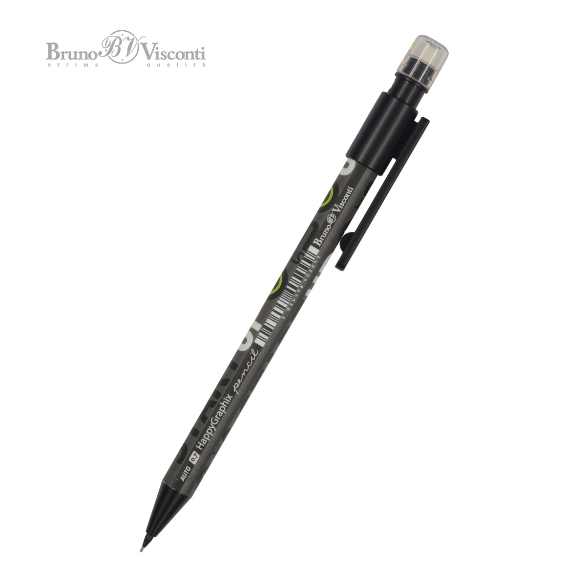 Механический карандаш серии «HappyGraphix» с ярким дизайном –порадует своими характеристиками и будет интересен не только взрослым, но и детям от 3 лет. Корпус выполнен из ударопрочного и нескользящего ABS-пластика, что гарантирует долгий срок службы, надежность и комфорт в работе. Бесперебойная механическая подача стержня. Мягкий универсальный ластик идеально удаляет следы графита на поверхности бумаги различных сортов. Он надежно защищен от загрязнения и повреждения прозрачным колпачком, легко снимаемым при необходимости. Грифель диаметром 0,7 мм и степенью твердости HB – универсален и легко применим как в чертежно-графических работах, так и для решения офисных и учебных задач. Карандаш дополнен надежным клип-зажимом для закрепления, например, в пенале или ежедневнике.