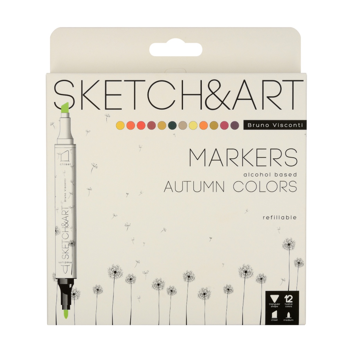 Высококачественные профессиональные маркеры «SKETCH&ART» для рисования, набросков, дизайнерских работ. В наборе 12 цветов, специально подобранных под тему.