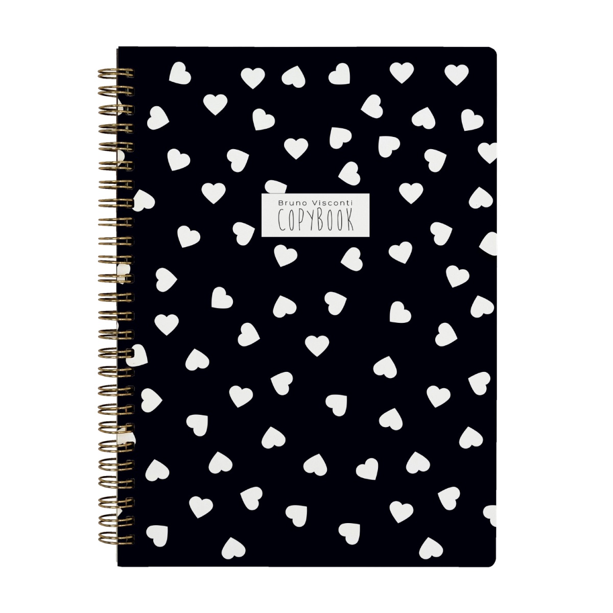 Тетрадь на гребне «BLACK&WHITE. Сердечки» формата В5 от Bruno Visconti в клетку для ведения записей различного характера.