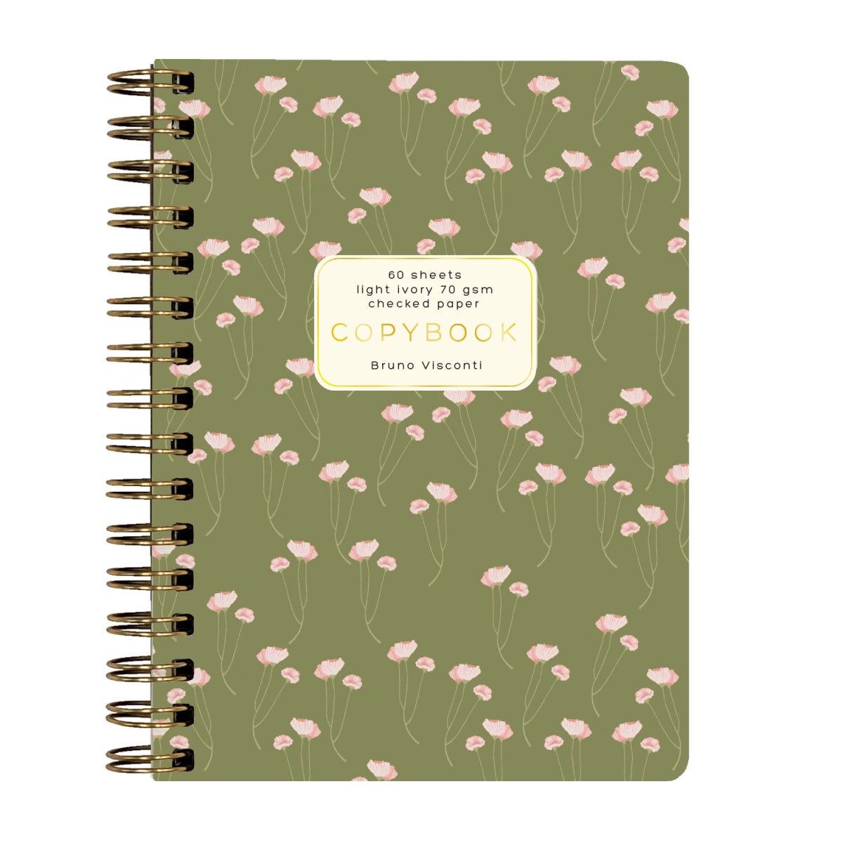 Тетрадь на гребне «МАКИ НА ЗЕЛЕНОМ» формата А6 от Bruno Visconti в клетку для ведения записей различного характера.