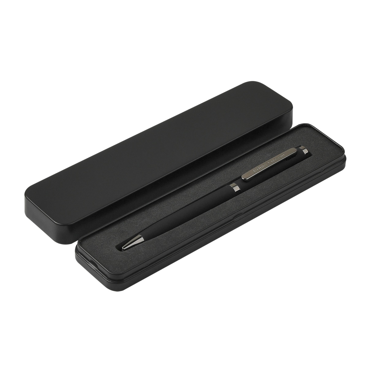 Лаконичный дизайн, прочный металлический корпус, строгость формы подчеркнут статус владельца ручки. Удобство в эксплуатации и тактильно приятные ощущения подарит бархатистое покрытие Soft Touch.