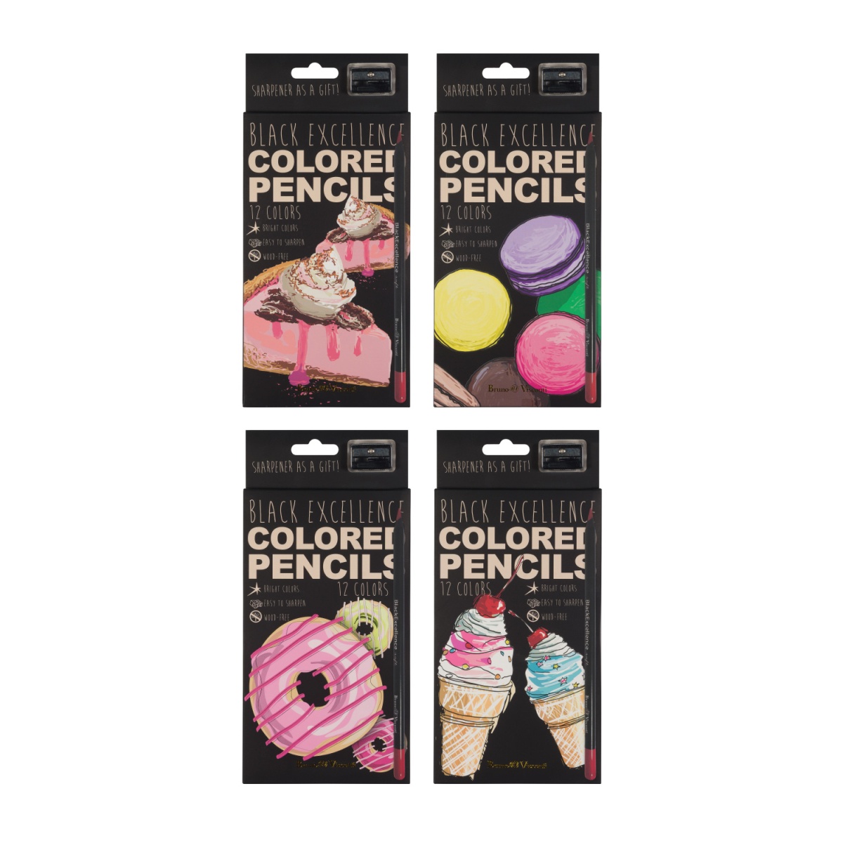 Набор из 12 цветных пластиковых карандашей «Black Excellence» в стильном черном корпусе с точилкой - принципиально новый дизайн продукта и упаковки при неизменно высоком качестве ТМ Bruno Visconti.